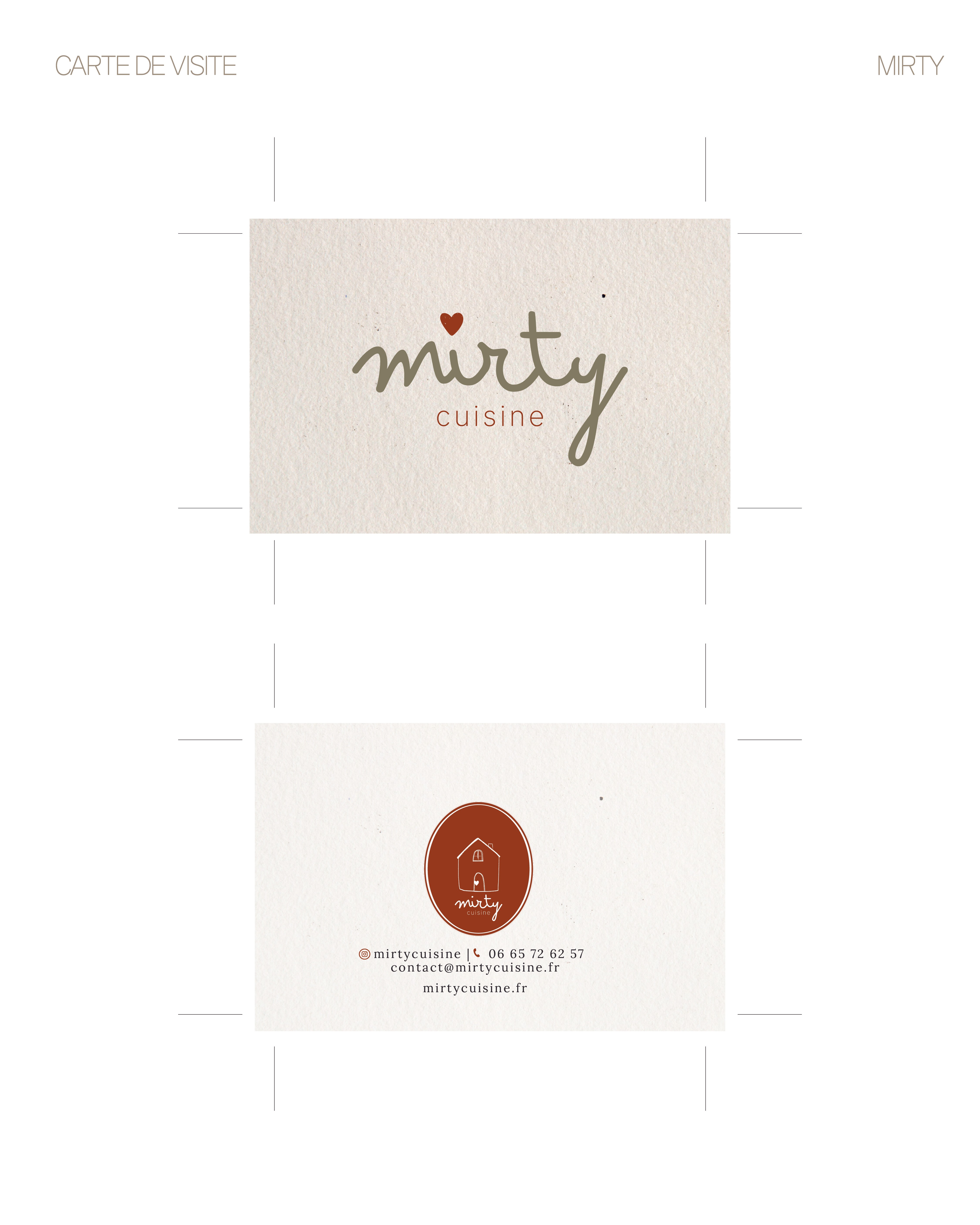 Comprendre l’histoire de Marie, sa vision de la cuisine, ses valeurs, son parcours et ce qui l’anime au quotidien a permis de faire émerger un nom juste, personnel et porteur de sens : MIRTY.